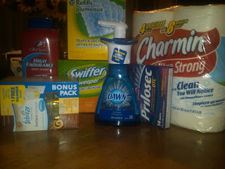 Anyway, I loaded up on all my cleaning items right before the weekend and then got so caught up in real life, I totally forgot to post about it. As I said earlier, I got $4 off for buying four P&G products; I also had some coupons because I'm a total coupon junkie now (email me for some good links to online coupons). I also spent my whole $25 gift card (thank you BlogHer & Kroger!). As you can see, I bought lots of stuff: